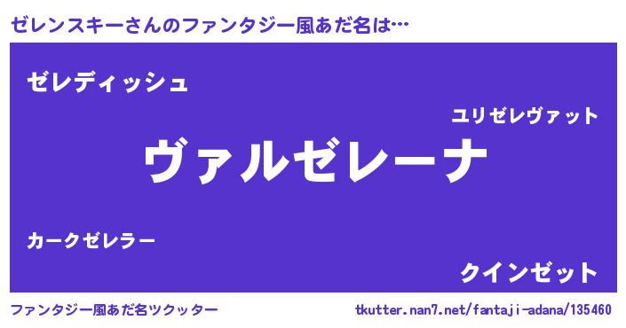 | 女子向けラノベタイトル風あだ名 | 『乙女ゲームの破滅フラグしかない悪役ゼレンスキーに転生してしまった…』 |