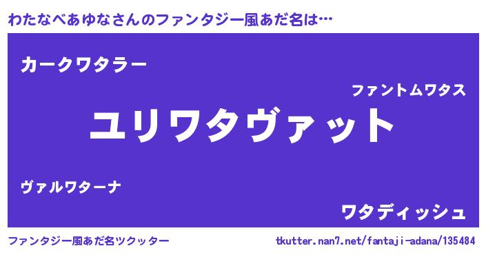 | ヒーロー風カッコイイあだ名 | 『ネオワタナベアユナ』『銀牙騎士ワタ』 |