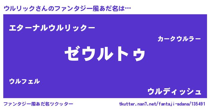| ヒーロー風カッコイイあだ名 | 『最強戦士ウルリック』『ネオウルリック』 |