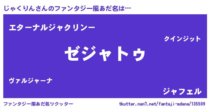 | 男性向けラノベタイトル風あだ名 | 『Re:じゃくりんから始める異世界生活』 |