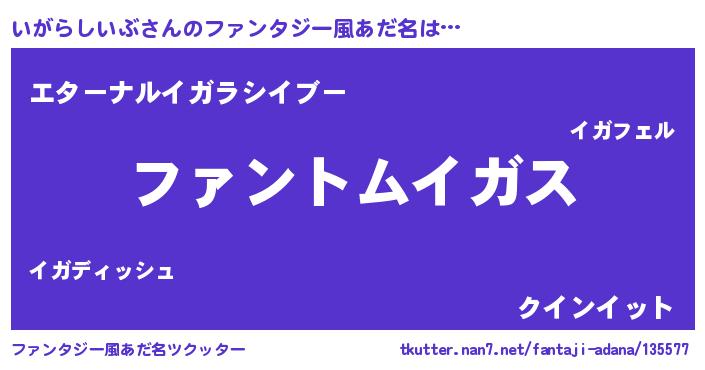 | 男性向けラノベタイトル風あだ名 | 『いがらしいぶに滅ぼされるだけの簡単なお仕事です』 |