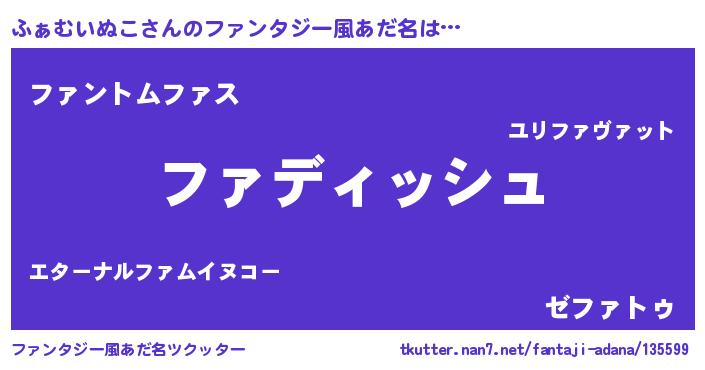 | ヘコむあだ名 | 『ふぁむいぬこ(苦笑)』『ふぁぷりん』 |