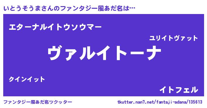 | 意味不明あだ名 | 『住所不定無職いとうそうま(91歳)』 |