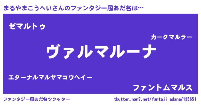 | 男性向けラノベタイトル風あだ名 | 『この素晴らしい世界にまるやまこうへいを!』 |