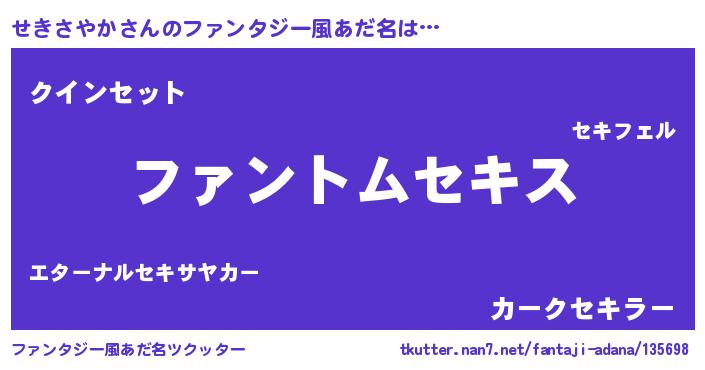 | ヒーロー風カッコイイあだ名 | 『魔戒騎士セキ』『慈愛の使者せきさやか』 |