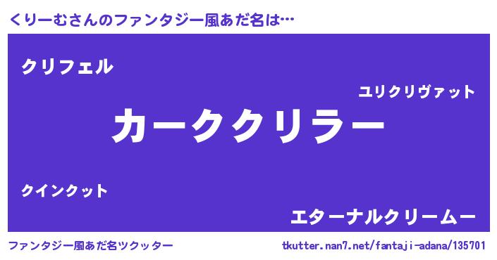 | 意味不明あだ名 | 『ペロリンくりーむ』『自称くりーむ』 |