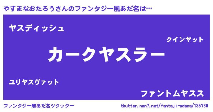 | 男性向けラノベタイトル風あだ名 | 『うちのやすまなおたろうが世界を掌握している!』 |