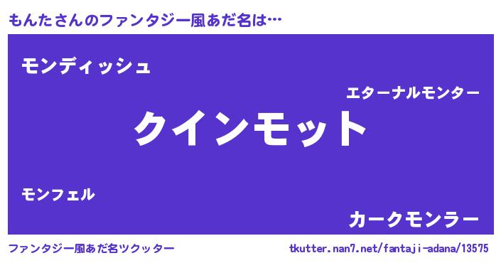 | 女子向けラノベタイトル風あだ名 | 『死神もんたの再婚』『もんたの契約王妃』 |