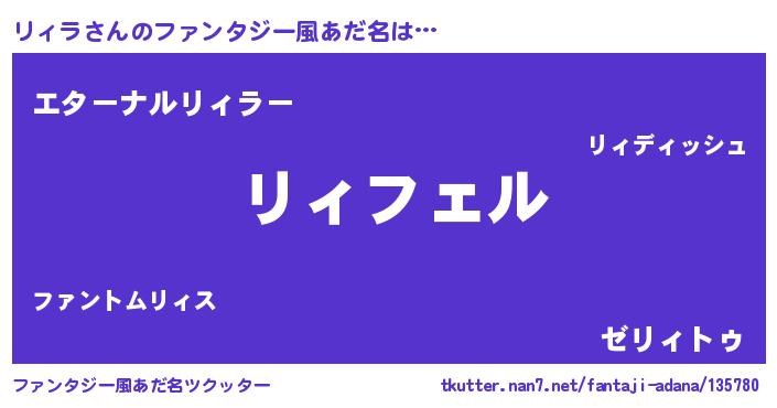 | 男性向けラノベタイトル風あだ名 | 『リィラの憂鬱』『魔法科高校のリィラ』 |