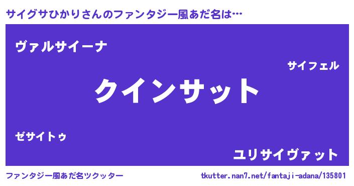 | 男性向けラノベタイトル風あだ名 | 『ノーゲーム・ノーサイグサヒカリ』 |