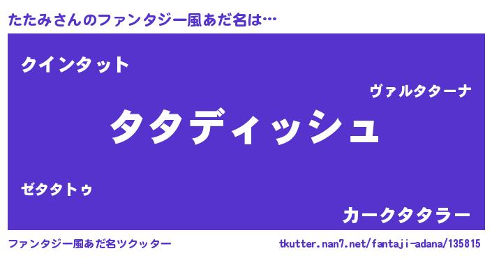 | ポケモン風あだ名 | 『ゼニタタ』『タタゴンZ』『タータイ』 |