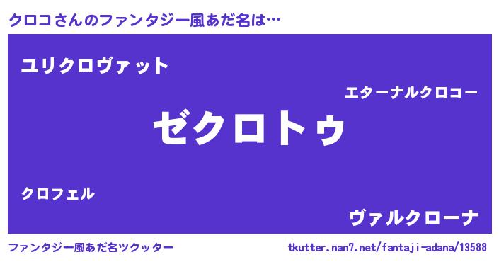 | 女子向けラノベタイトル風あだ名 | 『クロコなんてお断りですっ。』 |