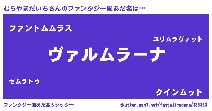 | 男性向けラノベタイトル風あだ名 | 『魔弾の王とむらやまだいち』 |