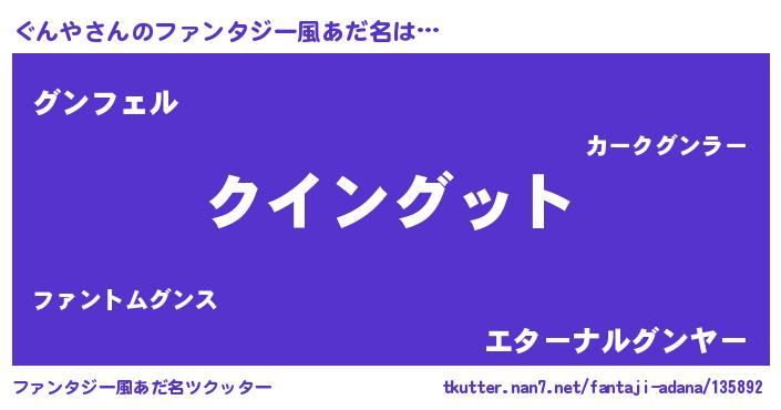 | 男性向けラノベタイトル風あだ名 | 『ノーゲーム・ノーグンヤ』 |