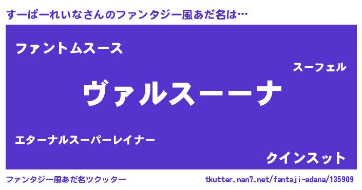 | 男性向けラノベタイトル風あだ名 | 『魔弾の王とすーぱーれいな』 |