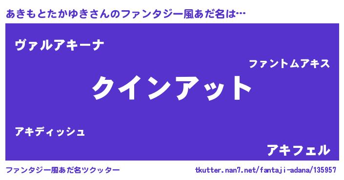 | 男性向けラノベタイトル風あだ名 | 『ノーゲーム・ノーアキモトタカユキ』 |