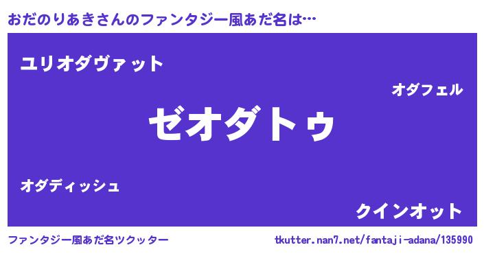 | 女子向けラノベタイトル風あだ名 | 『おだのりあきなんてお断りですっ。』 |