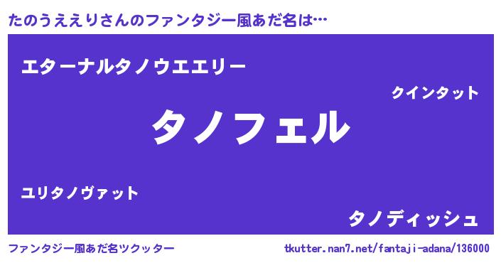 | 男性向けラノベタイトル風あだ名 | 『タノウエエリアートオンライン』 |