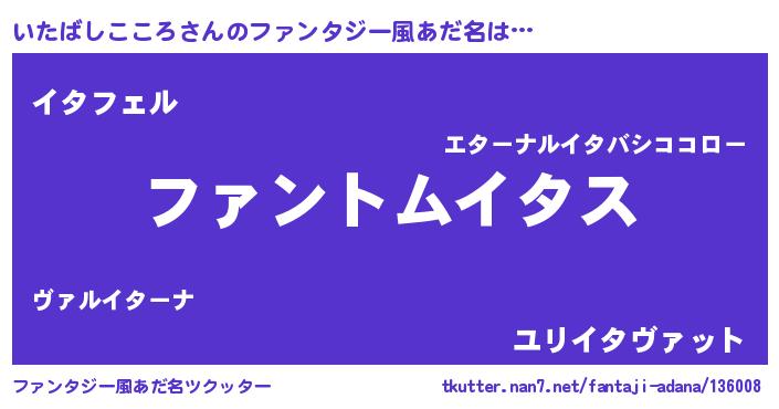 | ポケモン風あだ名 | 『ヒイタバシココロ』『イタチュウ』 |