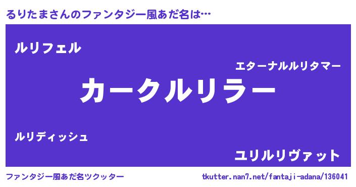 | 自動車の名前っぽいあだ名 | 『フェルーリ』『ルリティマ』 |
