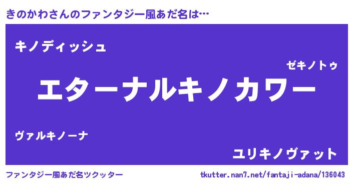 | 意味不明あだ名 | 『きのかわフォーエバー』『自称きのかわ』 |