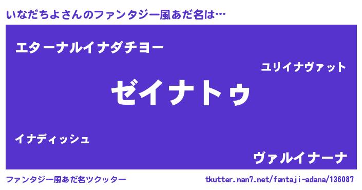 | 男性向けラノベタイトル風あだ名 | 『Re:いなだちよから始める異世界生活』 |