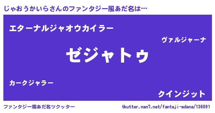 | 女子向けラノベタイトル風あだ名 | 『じゃおうかいらなんてお断りですっ。』 |