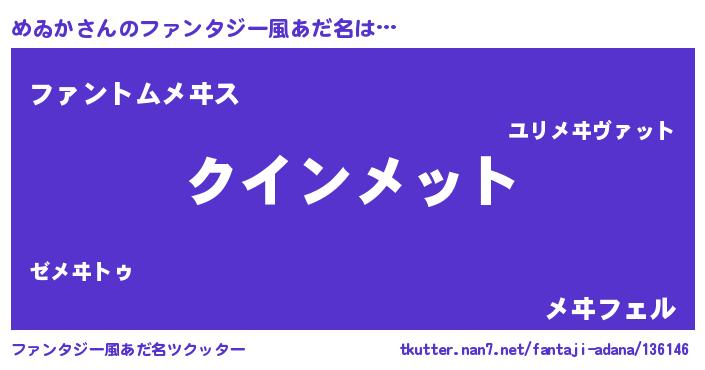 | 意味不明あだ名 | 『眠気覚ましガムめゐか味』『自称めゐか』 |