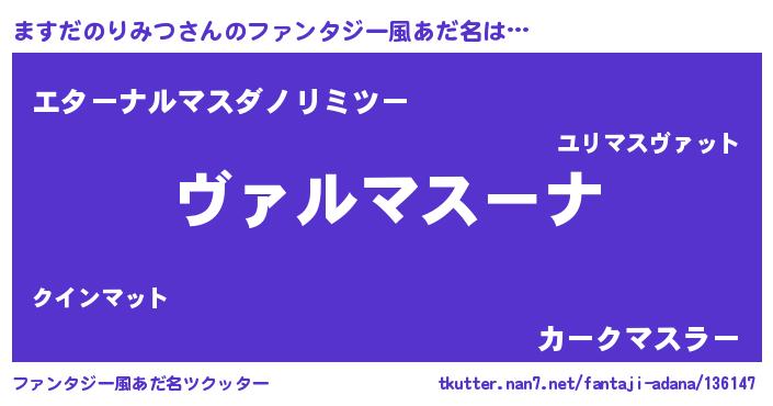 | 男性向けラノベタイトル風あだ名 | 『この素晴らしい世界にますだのりみつを!』 |