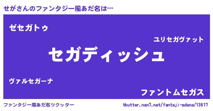 | ポケモン風あだ名 | 『ゼニセガ』『セガセウス』『ヒセガ』 |