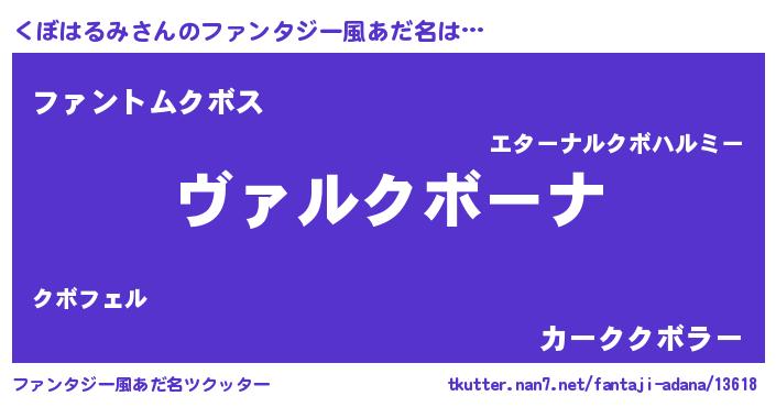 | 女子向けラノベタイトル風あだ名 | 『乙女ゲームの破滅フラグしかない悪役くぼはるみに転生してしまった…』 |