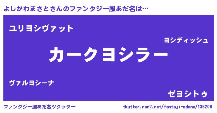 | 意味不明あだ名 | 『ヨモギ科よしかわまさと属』 |