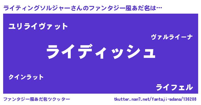 | ヒーロー風カッコイイあだ名 | 『ネオライティングソルジャー』 |