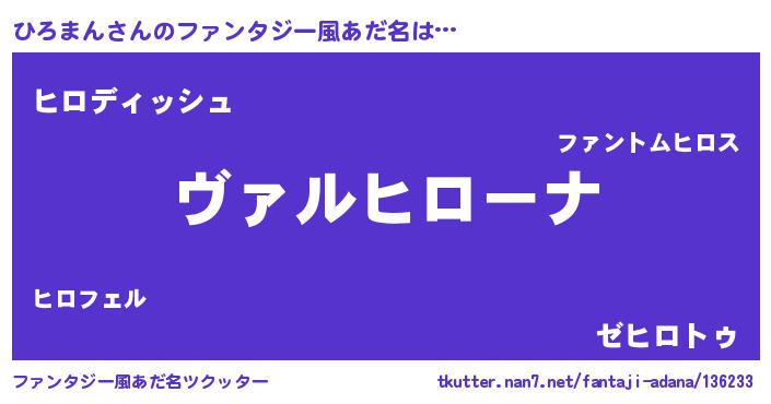 | 男性向けラノベタイトル風あだ名 | 『この素晴らしい世界にひろまんを!』 |