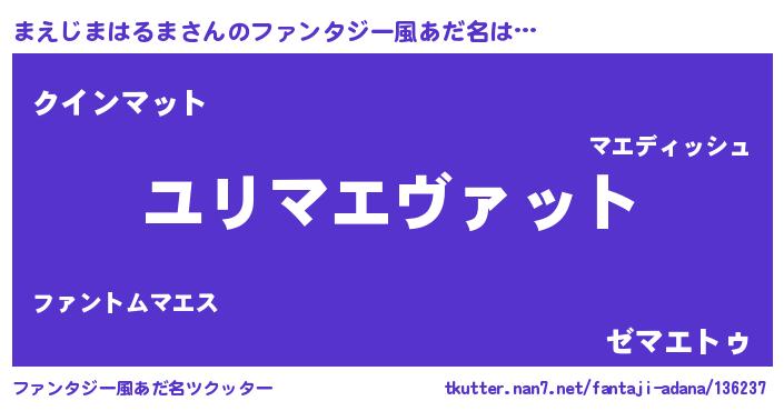 | ヘコむあだ名 | 『まえじまはるま(苦笑)』『まえを』 |