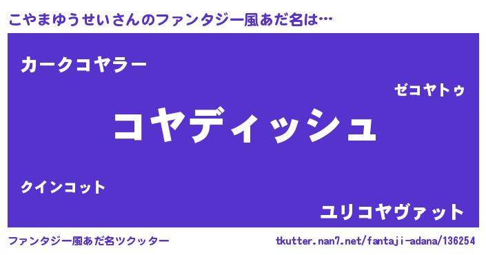 | ヘコむあだ名 | 『こやまゆうせい(苦笑)』『こやにゅー』 |