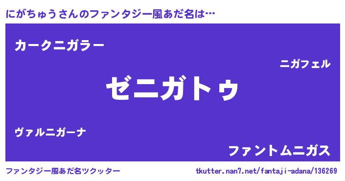 にがちゅうさんのファンタジー風あだ名をツクッター!