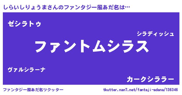 | 意味不明あだ名 | 『とにかく怪しいしらいしりょうま』 |