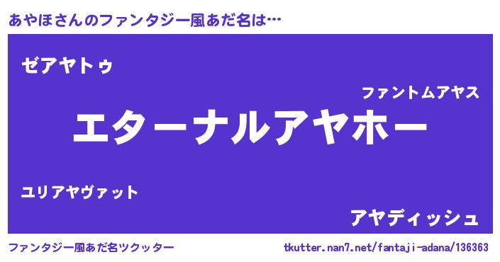 | 意味不明あだ名 | 『あやほフォーエバー』『自称あやほ』 |