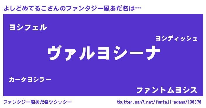 | 自動車の名前っぽいあだ名 | 『ヨウディ』『ヨシティマ』 |