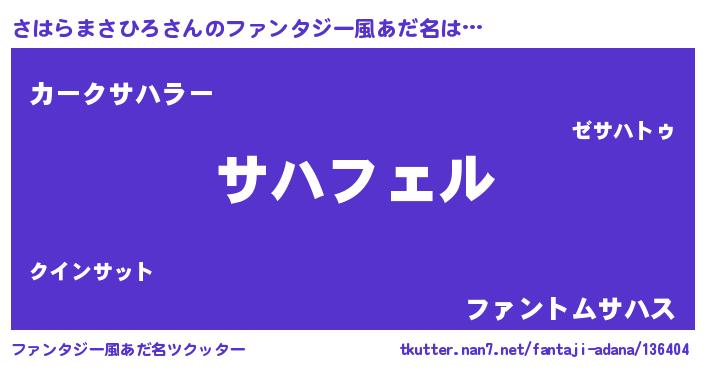 | 男性向けラノベタイトル風あだ名 | 『サハラマサヒロアートオンライン』 |