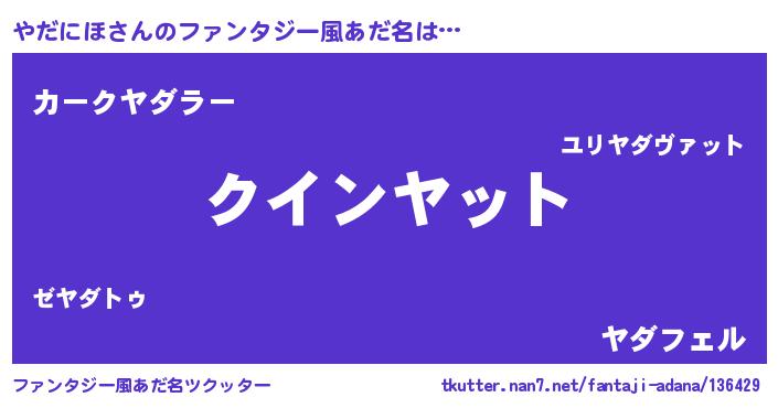 | 欧米人風あだ名 | 『ダニエルやだにほ』『マイケルやだにほ』 |