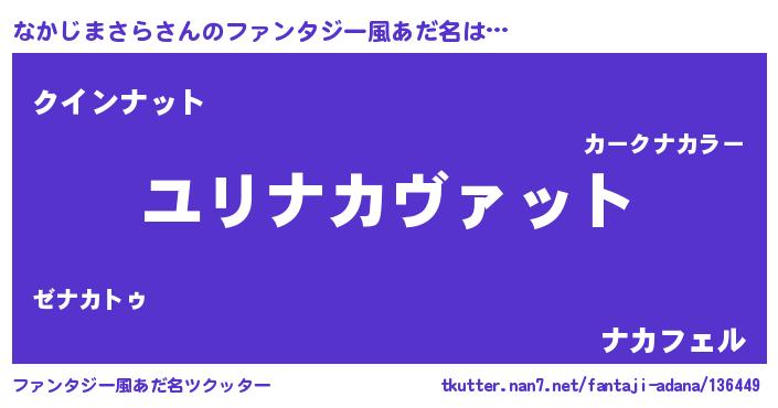 | 欧米人風あだ名 | 『アンジェラ・なかじまさら』 |