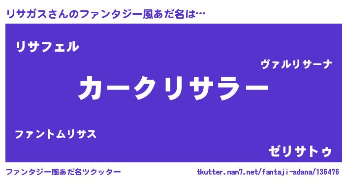 | 男性向けラノベタイトル風あだ名 | 『うちのリサガスが世界を掌握している!』 |