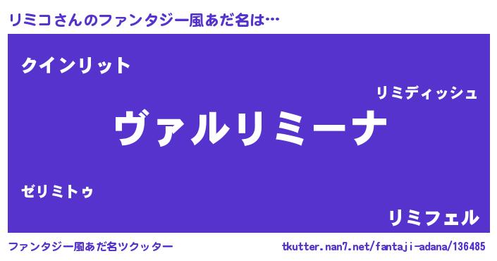 | ヘコむあだ名 | 『リミもー』『リミコ(遠い目)』 |