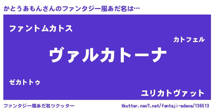 | 男性向けラノベタイトル風あだ名 | 『魔弾の王とかとうあもん』 |