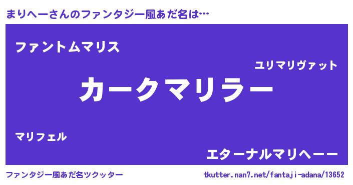 | ヒーロー風カッコイイあだ名 | 『幻影騎士マリ』『ウルトラまりへーマン』 |