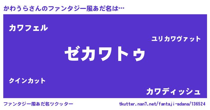 | 男性向けラノベタイトル風あだ名 | 『Re:かわうらから始める異世界生活』 |