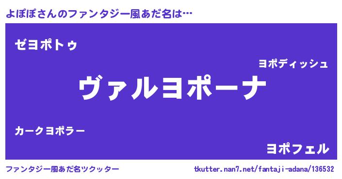 | 男性向けラノベタイトル風あだ名 | 『魔弾の王とよぽぽ』『よぽぽの憂鬱』 |