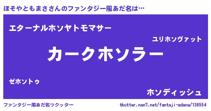 | 男性向けラノベタイトル風あだ名 | 『ほそやともまさに滅ぼされるだけの簡単なお仕事です』 |